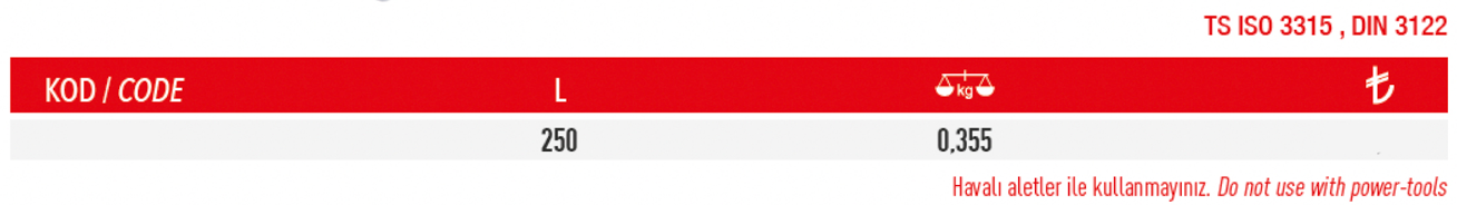 - Kare adaptörü TS ISO 1174 - DIN 3120-D 20’ye uygun,