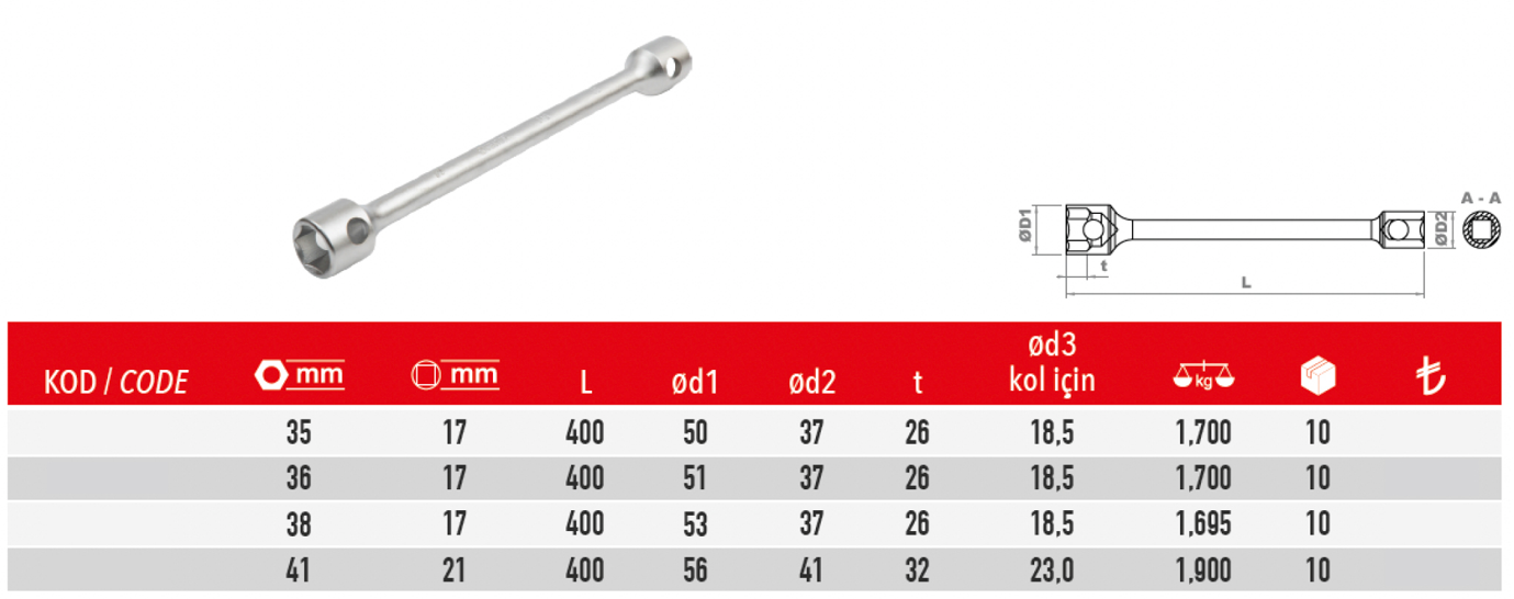 - Ağır vasıtalar için altıköşeli ve kare uçlu,