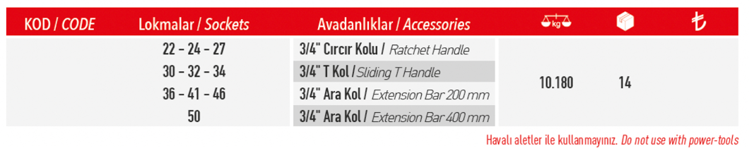 3/4" ALTI KÖŞE LOKMA ANAHTAR TAKIMI*