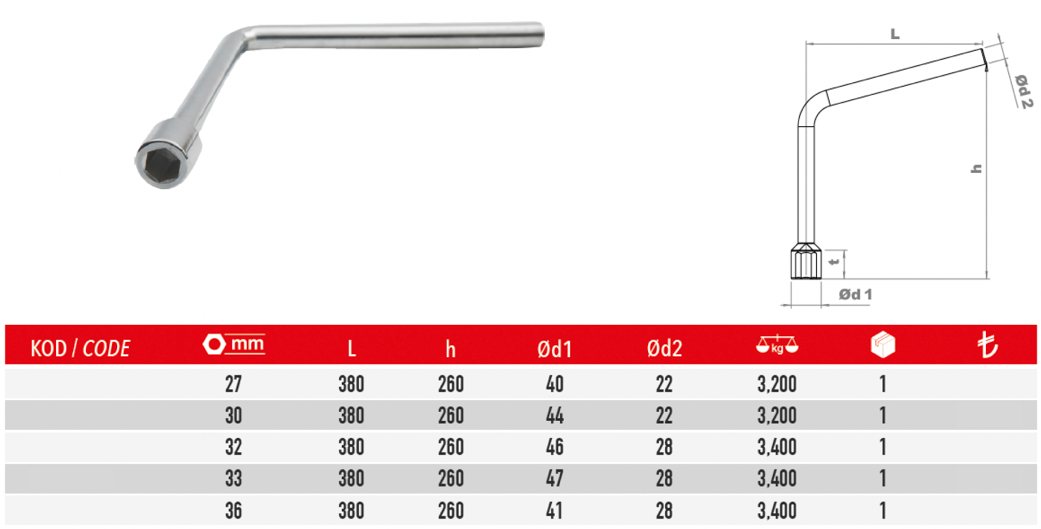 - Ağır vasıtalar için L tipi ve altıköşe uçlu,