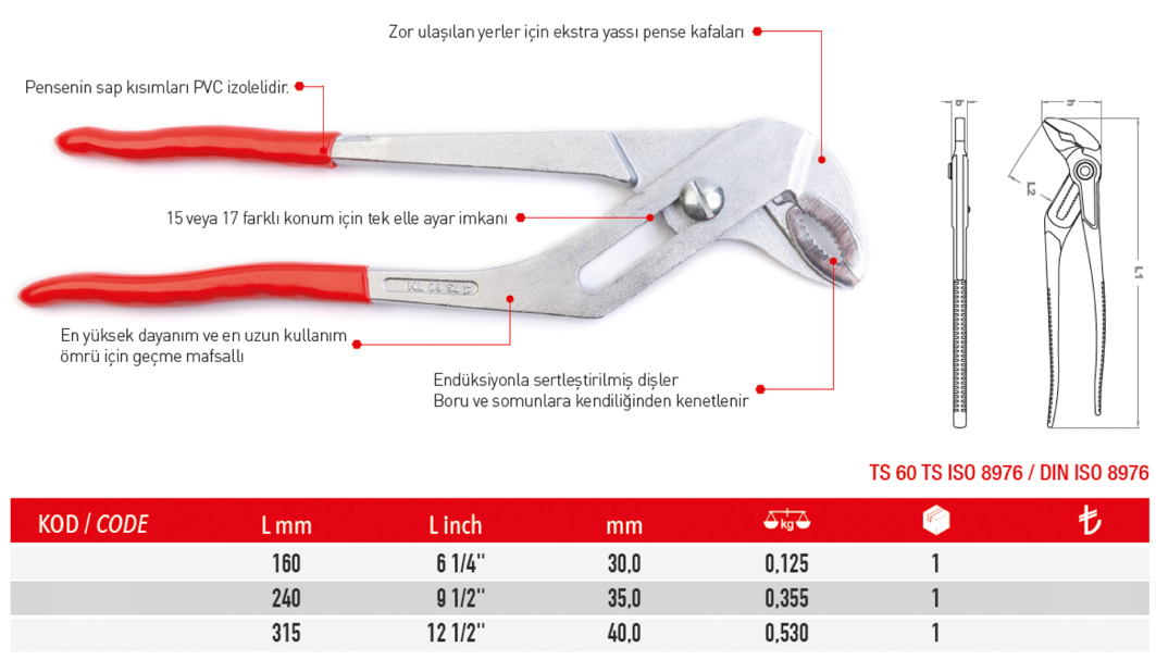 - Yüksek kaliteli Krom-Vanadyum çeliğinden üretilmiş,